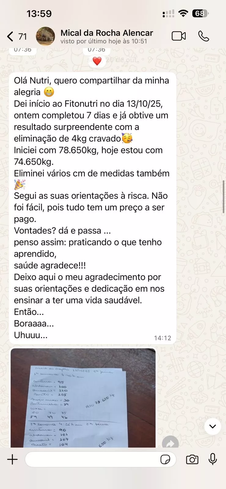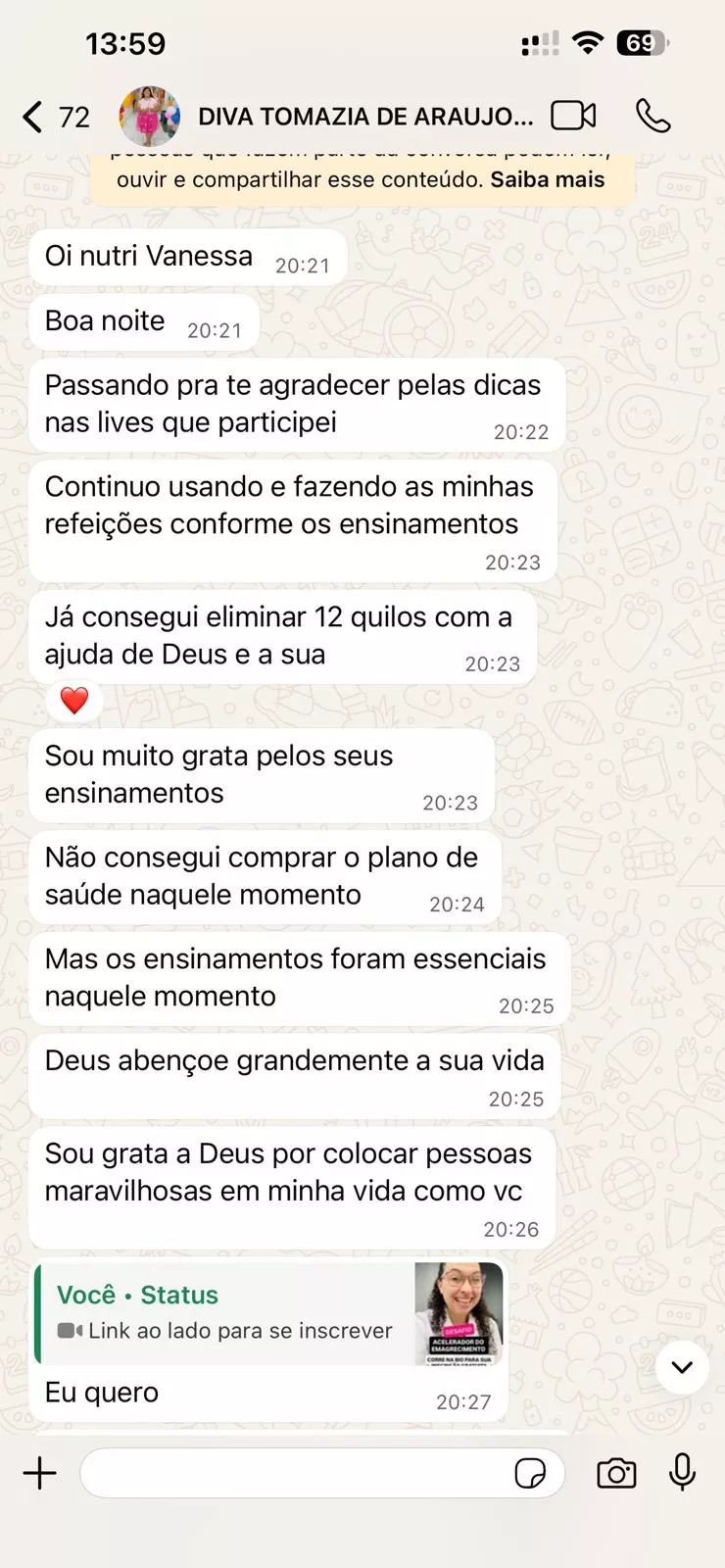 Eu entendo. Por isso o acesso custa apenas R$35, muito menos do que uma consulta ou qualquer tratamento. E ainda assim você recebe cardápios, chás, protocolos, suco detox, mix, orientações e 7 dias de comunidade — tudo o que entrego em uma consulta de R$550.